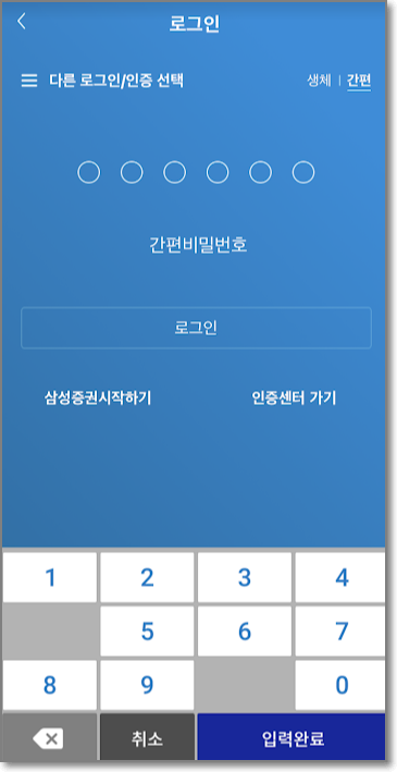 로그인을 누르고 간편비밀번호를 입력해서 로그인을 합니다.