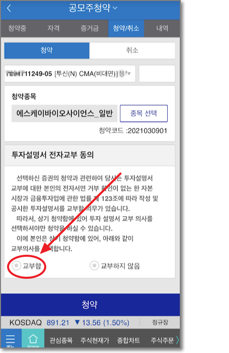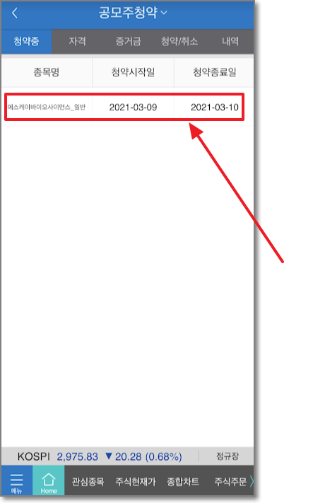 이제 마지막으로 삼성증권에서 sk바이오사이언스 공모주청약을 하겠습니다.
