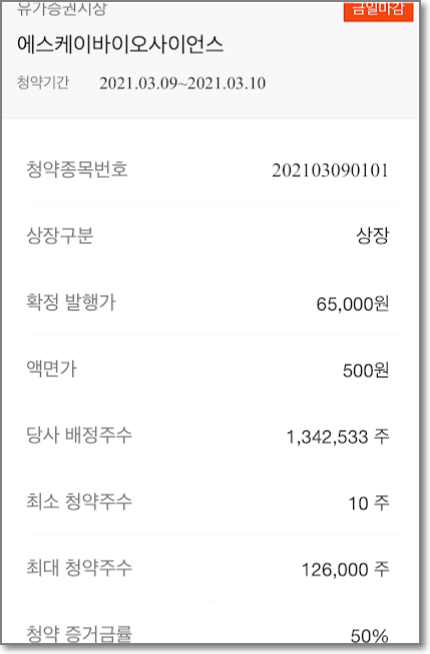 | 에스케이바이오사이언스 공모주 청약 절차, NH투자증권, 한국투자증권, SK증권 (0) | 2021.03.09 |