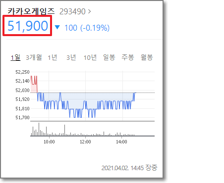 카카오 게임즈는 2021년 4월 2일 기준으로 51900원이고 SK바이오팜은 104,500원입니다.