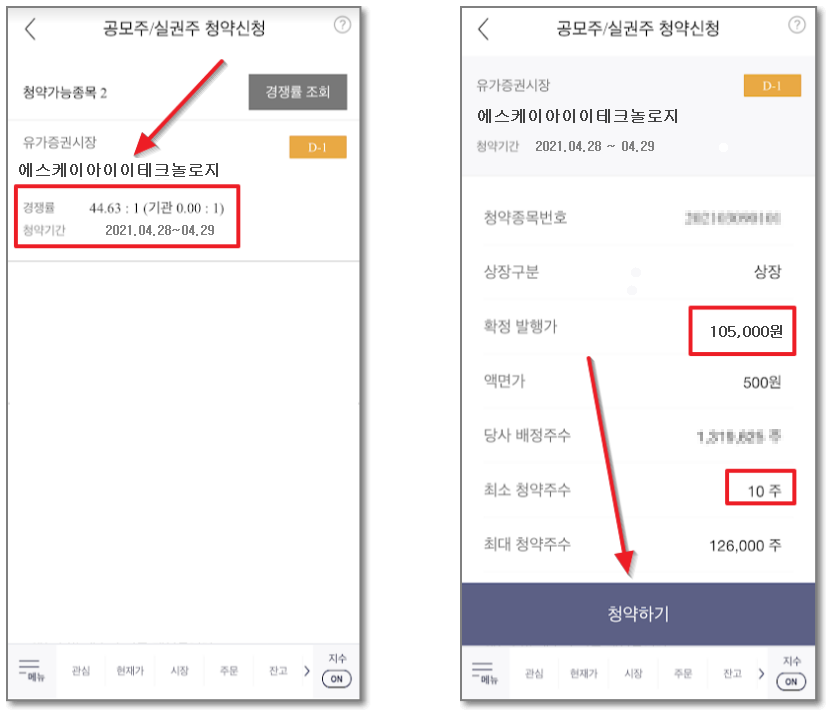 SKIET 공모주 청약방법 쉽게 따라하기(feat.미래에셋증권, 한국투자증권)