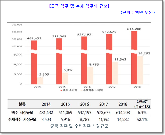 그리고 2020년 이전과 이후 크게 달라지는 점 중에 하나로, 주세법 개정이 있습니다. 2020년 이후 폭발적인 매출 증가율이 보이는 점에서 주세법 개정 효과로 4캔 1만 원 시장에 접어들면서 가격 경쟁력을 확보하여 2020년에는 이전과 다른 매출 성장세를 보였고, 이러한 성장세는 2020년 한 해에 국한된 일시적인 성장이 아니라 2021년 이후에도 지속될 것으로 전망합니다. 다만, 국내 전체 맥주시장이 정체이긴 하나 주세법 개정을 통한 가격경쟁력, 브랜드 경쟁력 등을 바탕으로 수제 맥주시장점유율 확대뿐만 아니라 프리미엄 맥주시장 점유율을 확대하고자 한다고 합니다.