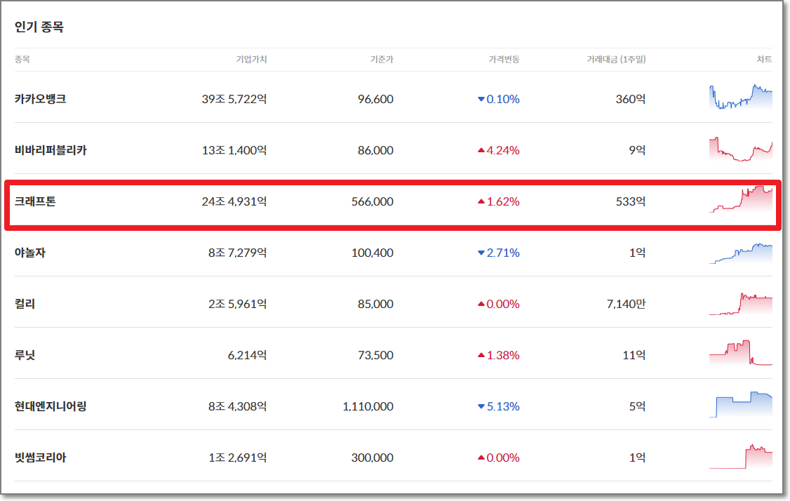 로그인을 하고 본인인증을 했으면 아래처럼 첫화면으로 돌아와서 원하는 비상장 주식을 누릅니다. 여기서는 크래프톤을 눌러보겠습니다.
