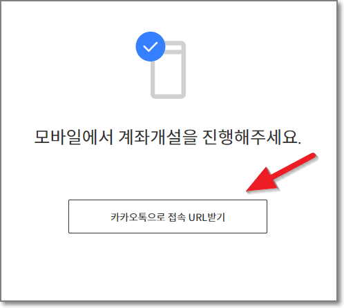 계좌는 모바일에서 개설해야 하므로 "카카오톡으로 접속 URL받기"를 누릅니다.