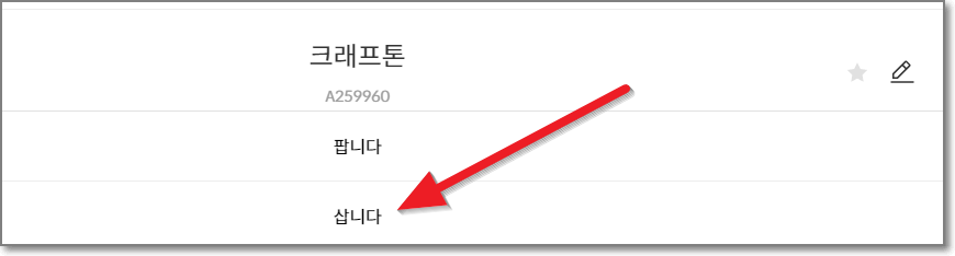 "팝니다"와 "삽니다"가 있습니다. 주식을 사려고 하는 것이니까 "삽니다"를 누릅니다.