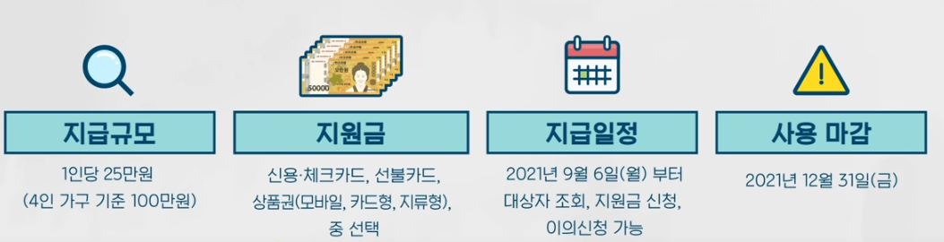 지급일정 : 21년 9월 6일부터 대상자 조회, 지원금 신청, 이의신청 가능