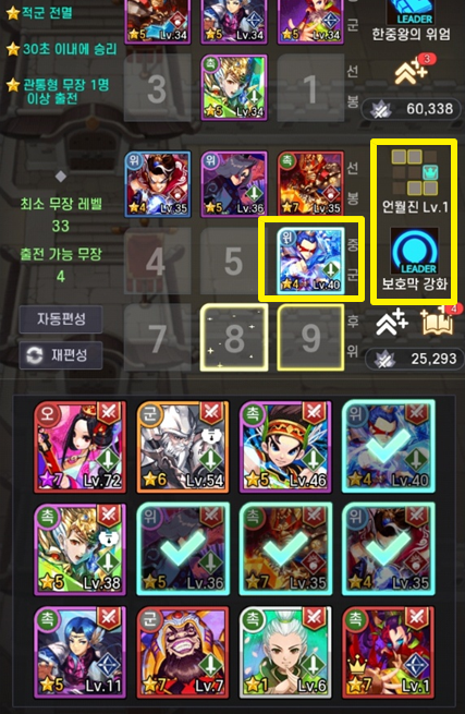 무한돌파 삼국지 리버스 대전모드는 결투장과 관문돌파가 있는데요. 여기서는 관문돌파에서 실험을 해보겠습니다.