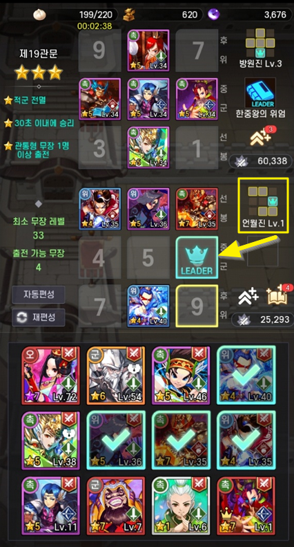 다른 무장인 "5성 환술의 장각"으로 리더를 잡아보겠습니다.