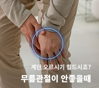 나이가 들면 계단을 오르내리거나 일반적인 걸음에서도 무릎 관절에 통증을 호소하는 경우가 많은데요. 이 현상은 특히환절기에 더 심해지는 경도 있습니다. 근육의 유연성도 떨어지며 특히 우리 일상생활에서 사용도가 높은 무릎 관절에 무리가 가는 경우가 많은데요. 건강한 관절을 유지하기 위해서는 평소에도 올바른 자세의 걸음걸이를 유지하여 관절에 무리를 주지 않는 선에서 적절한 운동이 필요합니다.